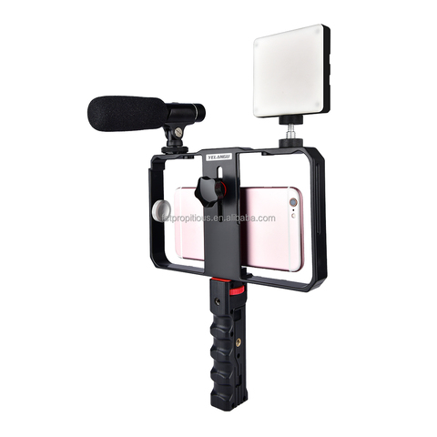 Pc05 אלומיניום סגסוגת טלפון כלוב ערכת ידית כפולה ידית אחיזה טלפון vlog צילום w/נעל & ברגים תמיכה למלא אור